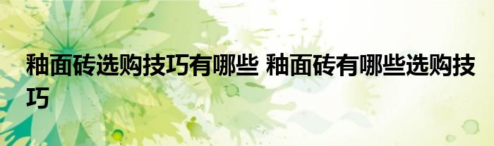大家好,小美來為大家解答以上問題。釉面磚選購技巧有哪些,釉面磚有哪些選購技巧很多人還不知道,現在讓我們一起來看看吧!