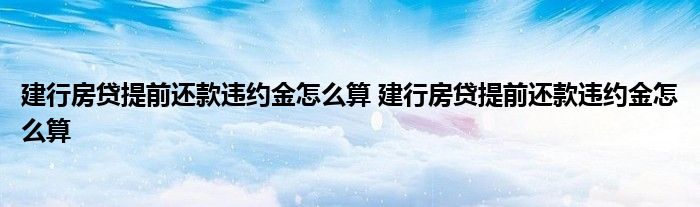 大家好,我是云百科的客服小柏,我來(lái)為大家解答以上問題。建行房貸提前還款違約金怎么算,建行房貸提前還款違約金怎么算,很多人還不知道,現(xiàn)在讓我們一起來(lái)看看吧!