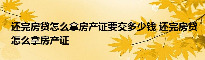 大家好,我是云百科的客服小柏,我來為大家解答以上問題。還完房貸怎么拿房產證要交多少錢,還完房貸怎么拿房產證,很多人還不知道,現在讓我們一起來看看吧!
