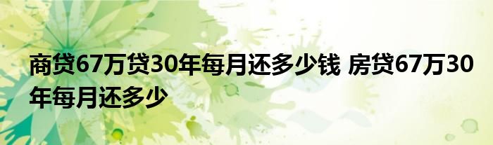 大家好,我是云百科的客服小柏,我來為大家解答以上問題。商貸67萬貸30年每月還多少錢,房貸67萬30年每月還多少,很多人還不知道,現(xiàn)在讓我們一起來看看吧!