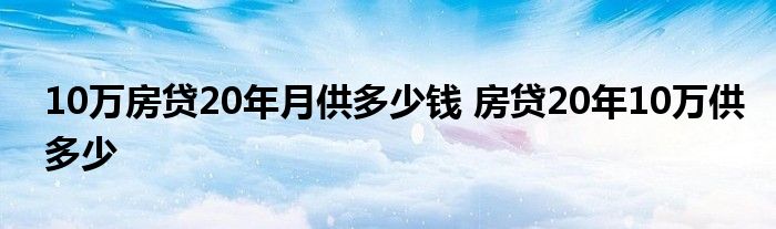大家好,我是云百科的客服小柏,我來為大家解答以上問題。10萬房貸20年月供多少錢,房貸20年10萬供多少,很多人還不知道,現在讓我們一起來看看吧!