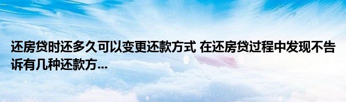 大家好,我是云百科的客服小柏,我來為大家解答以上問題。還房貸時還多久可以變更還款方式,在還房貸過程中發現不告訴有幾種還款方...,很多人還不知道,現在讓我們一起來看看吧!