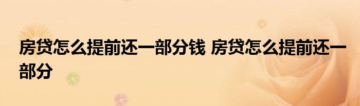 大家好,我是云百科的客服小柏,我來為大家解答以上問題。房貸怎么提前還一部分錢,房貸怎么提前還一部分,很多人還不知道,現在讓我們一起來看看吧!