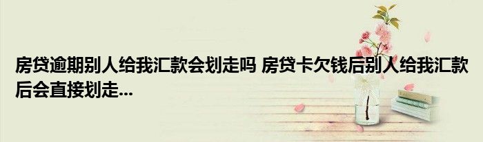 大家好,我是云百科的客服小柏,我來為大家解答以上問題。房貸逾期別人給我匯款會劃走嗎,房貸卡欠錢后別人給我匯款后會直接劃走...,很多人還不知道,現在讓我們一起來看看吧!