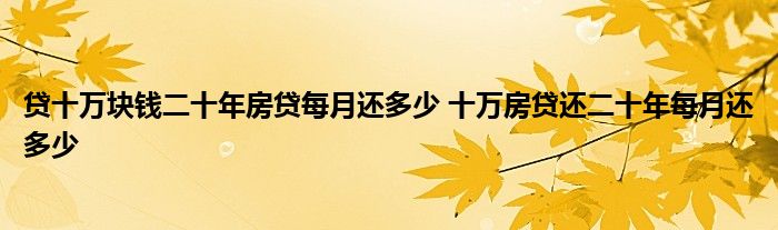 大家好,我是云百科的客服小柏,我來為大家解答以上問題。貸十萬塊錢二十年房貸每月還多少,十萬房貸還二十年每月還多少,很多人還不知道,現在讓我們一起來看看吧!