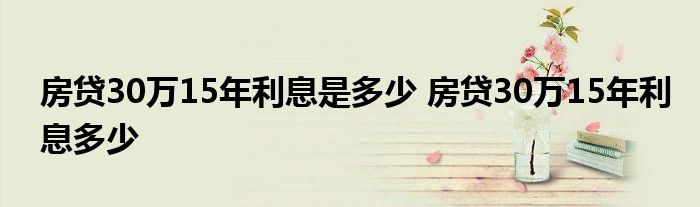 大家好,我是云百科的客服小柏,我來(lái)為大家解答以上問(wèn)題。房貸30萬(wàn)15年利息是多少,房貸30萬(wàn)15年利息多少,很多人還不知道,現(xiàn)在讓我們一起來(lái)看看吧!