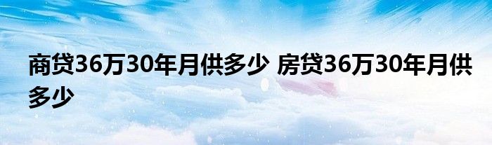 大家好,我是云百科的客服小柏,我來為大家解答以上問題。商貸36萬30年月供多少,房貸36萬30年月供多少,很多人還不知道,現在讓我們一起來看看吧!