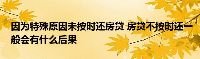 大家好,我是云百科的客服小柏,我來為大家解答以上問題。因為特殊原因未按時還房貸,房貸不按時還一般會有什么后果,很多人還不知道,現在讓我們一起來看看吧!