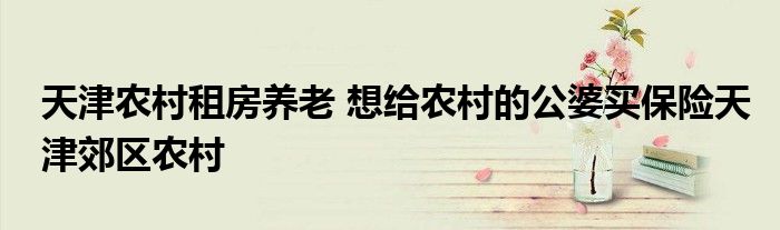 大家好,我是云百科的客服小柏,我來為大家解答以上問題。天津農村租房養老,想給農村的公婆買保險天津郊區農村,很多人還不知道,現在讓我們一起來看看吧!