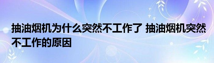 大家好,小美來為大家解答以上問題。抽油煙機為什么突然不工作了,抽油煙機突然不工作的原因很多人還不知道,現在讓我們一起來看看吧!