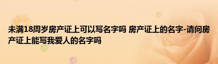 大家好,我是云百科的客服小柏,我來為大家解答以上問題。未滿18周歲房產(chǎn)證上可以寫名字嗎,房產(chǎn)證上的名字-請問房產(chǎn)證上能寫我愛人的名字嗎,很多人還不知道,現(xiàn)在讓我們一起來看看吧!