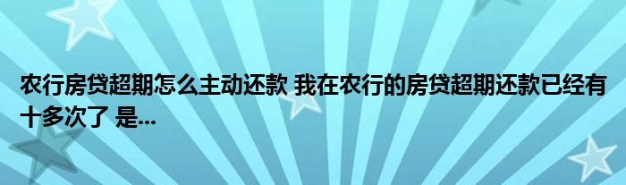 大家好,我是云百科的客服小柏,我來為大家解答以上問題。農行房貸超期怎么主動還款,我在農行的房貸超期還款已經有十多次了,是...,很多人還不知道,現在讓我們一起來看看吧!