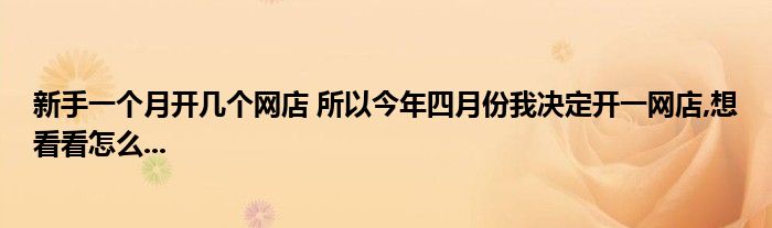 大家好,我是云百科的客服小柏,我來為大家解答以上問題。新手一個月開幾個網(wǎng)店,所以今年四月份我決定開一網(wǎng)店,想看看怎么...,很多人還不知道,現(xiàn)在讓我們一起來看看吧!