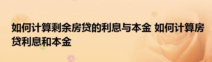 大家好,我是云百科的客服小柏,我來為大家解答以上問題。如何計算剩余房貸的利息與本金,如何計算房貸利息和本金,很多人還不知道,現(xiàn)在讓我們一起來看看吧!