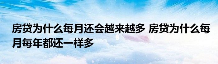 大家好,我是云百科的客服小柏,我來為大家解答以上問題。房貸為什么每月還會(huì)越來越多,房貸為什么每月每年都還一樣多,很多人還不知道,現(xiàn)在讓我們一起來看看吧!