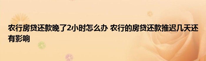 大家好,我是云百科的客服小柏,我來為大家解答以上問題。農(nóng)行房貸還款晚了2小時怎么辦,農(nóng)行的房貸還款推遲幾天還有影響,很多人還不知道,現(xiàn)在讓我們一起來看看吧!
