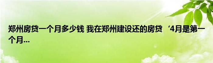 大家好,我是云百科的客服小柏,我來為大家解答以上問題。鄭州房貸一個月多少錢,我在鄭州建設還的房貸‘4月是第一個月...,很多人還不知道,現在讓我們一起來看看吧!
