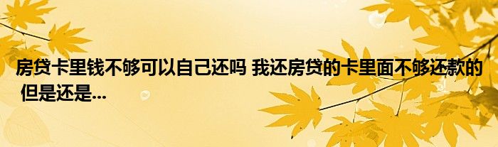 大家好,我是云百科的客服小柏,我來為大家解答以上問題。房貸卡里錢不夠可以自己還嗎,我還房貸的卡里面不夠還款的,但是還是...,很多人還不知道,現在讓我們一起來看看吧!