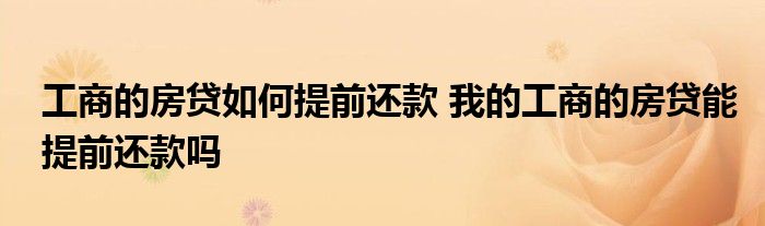 大家好,我是云百科的客服小柏,我來為大家解答以上問題。工商的房貸如何提前還款,我的工商的房貸能提前還款嗎,很多人還不知道,現(xiàn)在讓我們一起來看看吧!
