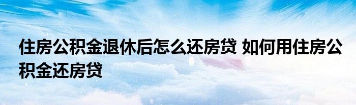 大家好,我是云百科的客服小柏,我來為大家解答以上問題。住房公積金退休后怎么還房貸,如何用住房公積金還房貸,很多人還不知道,現在讓我們一起來看看吧!