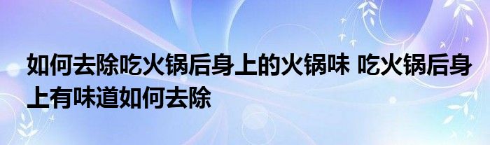 大家好,小美來為大家解答以上問題。如何去除吃火鍋后身上的火鍋味,吃火鍋后身上有味道如何去除很多人還不知道,現(xiàn)在讓我們一起來看看吧!