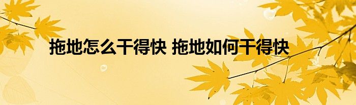 大家好,小美來為大家解答以上問題。拖地怎么干得快,拖地如何干得快很多人還不知道,現(xiàn)在讓我們一起來看看吧!