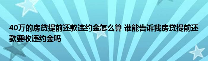 大家好,我是云百科的客服小柏,我來為大家解答以上問題。40萬的房貸提前還款違約金怎么算,誰能告訴我房貸提前還款要收違約金嗎,很多人還不知道,現在讓我們一起來看看吧!