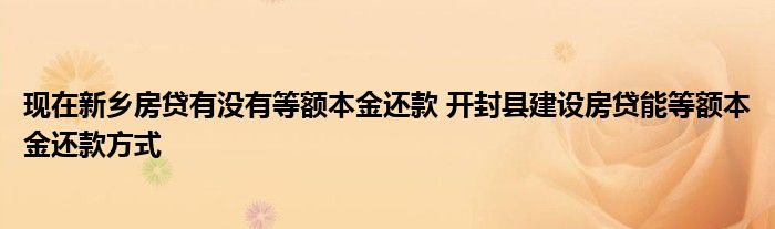 大家好,我是云百科的客服小柏,我來為大家解答以上問題。現在新鄉房貸有沒有等額本金還款,開封縣建設房貸能等額本金還款方式,很多人還不知道,現在讓我們一起來看看吧!