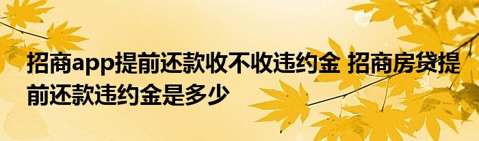 大家好,我是云百科的客服小柏,我來為大家解答以上問題。招商app提前還款收不收違約金,招商房貸提前還款違約金是多少,很多人還不知道,現在讓我們一起來看看吧!