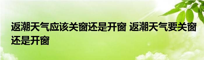 大家好,小美來為大家解答以上問題。返潮天氣應該關窗還是開窗,返潮天氣要關窗還是開窗很多人還不知道,現在讓我們一起來看看吧!