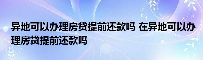 大家好,我是云百科的客服小柏,我來為大家解答以上問題。異地可以辦理房貸提前還款嗎,在異地可以辦理房貸提前還款嗎,很多人還不知道,現在讓我們一起來看看吧!