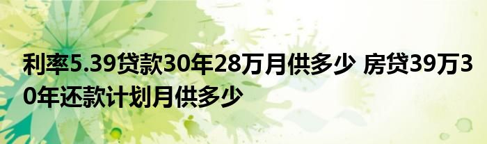 大家好,我是云百科的客服小柏,我來(lái)為大家解答以上問(wèn)題。利率5.39貸款30年28萬(wàn)月供多少,房貸39萬(wàn)30年還款計(jì)劃月供多少,很多人還不知道,現(xiàn)在讓我們一起來(lái)看看吧!