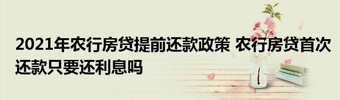 大家好,我是云百科的客服小柏,我來為大家解答以上問題。2021年農行房貸提前還款政策,農行房貸首次還款只要還利息嗎,很多人還不知道,現在讓我們一起來看看吧!