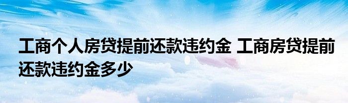 大家好,我是云百科的客服小柏,我來為大家解答以上問題。工商個人房貸提前還款違約金,工商房貸提前還款違約金多少,很多人還不知道,現在讓我們一起來看看吧!
