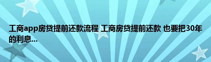 大家好,我是云百科的客服小柏,我來為大家解答以上問題。工商app房貸提前還款流程,工商房貸提前還款,也要把30年的利息...,很多人還不知道,現(xiàn)在讓我們一起來看看吧!