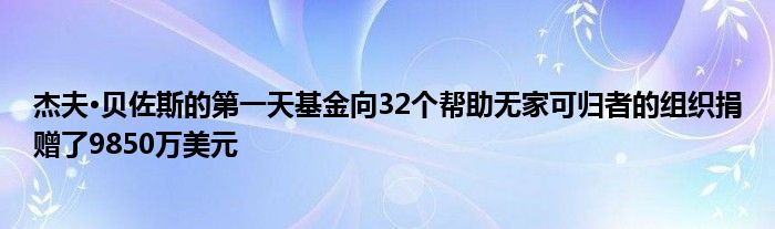 亞馬遜首席執行官杰夫·貝佐斯周四宣布,32個組織將從貝佐斯第一天基金獲得總計9850萬美元的資助。