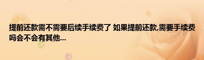 大家好,我是云百科的客服小柏,我來為大家解答以上問題。提前還款需不需要后續手續費了,如果提前還款,需要手續費嗎會不會有其他...,很多人還不知道,現在讓我們一起來看看吧!