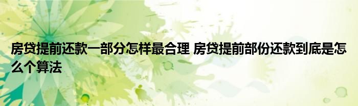 大家好,我是云百科的客服小柏,我來為大家解答以上問題。房貸提前還款一部分怎樣最合理,房貸提前部份還款到底是怎么個算法,很多人還不知道,現在讓我們一起來看看吧!