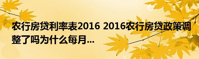 大家好,我是云百科的客服小柏,我來為大家解答以上問題。農行房貸利率表2016,2016農行房貸政策調整了嗎為什么每月...,很多人還不知道,現在讓我們一起來看看吧!