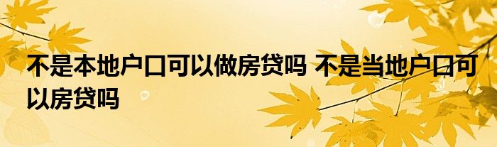 大家好,我是云百科的客服小柏,我來為大家解答以上問題。不是本地戶口可以做房貸嗎,不是當地戶口可以房貸嗎,很多人還不知道,現在讓我們一起來看看吧!