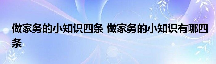 大家好,小美來為大家解答以上問題。做家務的小知識四條,做家務的小知識有哪四條很多人還不知道,現在讓我們一起來看看吧!
