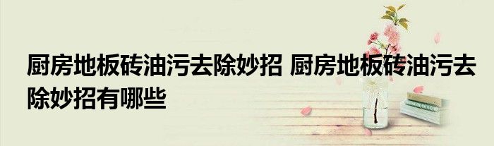 大家好,小美來為大家解答以上問題。廚房地板磚油污去除妙招,廚房地板磚油污去除妙招有哪些很多人還不知道,現(xiàn)在讓我們一起來看看吧!