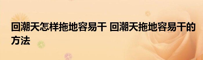 大家好,小美來為大家解答以上問題。回潮天怎樣拖地容易干,回潮天拖地容易干的方法很多人還不知道,現在讓我們一起來看看吧!