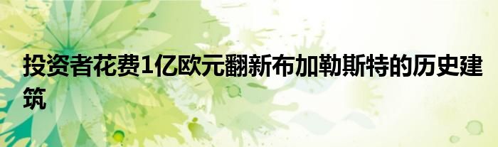 在過去三年里,對布加勒斯特歷史建筑的翻修投資總計超過1億歐元。