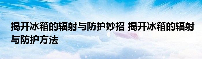 大家好,小美來(lái)為大家解答以上問題。揭開冰箱的輻射與防護(hù)妙招,揭開冰箱的輻射與防護(hù)方法很多人還不知道,現(xiàn)在讓我們一起來(lái)看看吧!