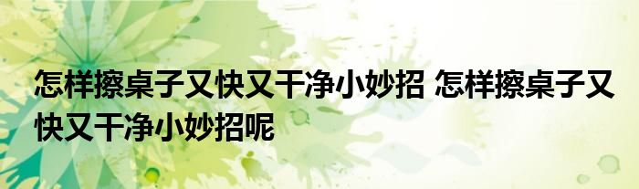 大家好,小美來為大家解答以上問題。怎樣擦桌子又快又干凈小妙招,怎樣擦桌子又快又干凈小妙招呢很多人還不知道,現在讓我們一起來看看吧!