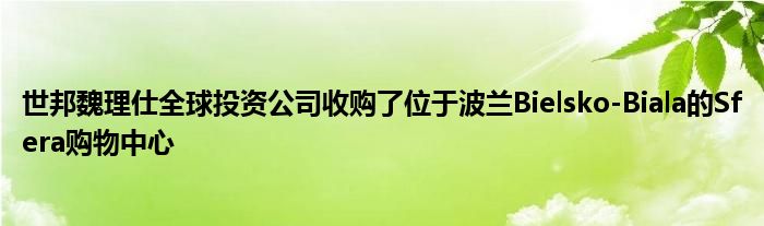 世邦魏理仕全球投資者(CBRE Global Investors)交易經理Grzegorz Ryszka評論道:“收購世邦魏理仕(Sfera)表明,世邦魏理仕全球投資者對這些有吸引力的經濟增長市場中占據主導地位的購物中心感興趣,并有能力購買這些中心。我們希望繼續實施引進新租戶的計劃,尤其是強大的時尚零售商,以支持我們在持有期內增加價值和實現租金增長的