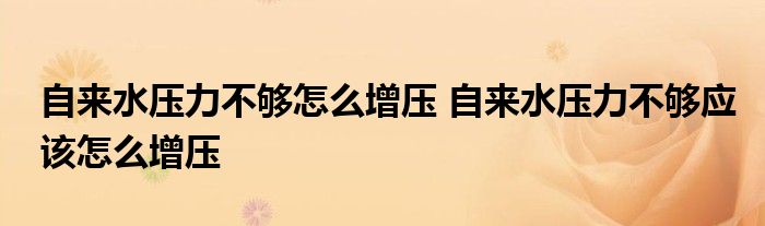 大家好,小美來為大家解答以上問題。自來水壓力不夠怎么增壓,自來水壓力不夠應該怎么增壓很多人還不知道,現在讓我們一起來看看吧!