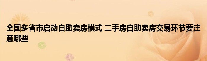 大家好,小美來為大家解答以上問題。全國多省市啟動自助賣房模式,二手房自助賣房交易環(huán)節(jié)要注意哪些很多人還不知道,現(xiàn)在讓我們一起來看看吧!
