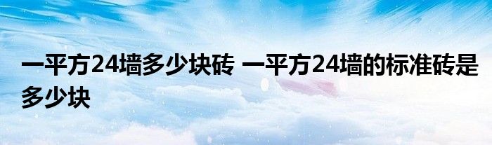大家好,小美來為大家解答以上問題。一平方24墻多少塊磚,一平方24墻的標(biāo)準(zhǔn)磚是多少塊很多人還不知道,現(xiàn)在讓我們一起來看看吧!